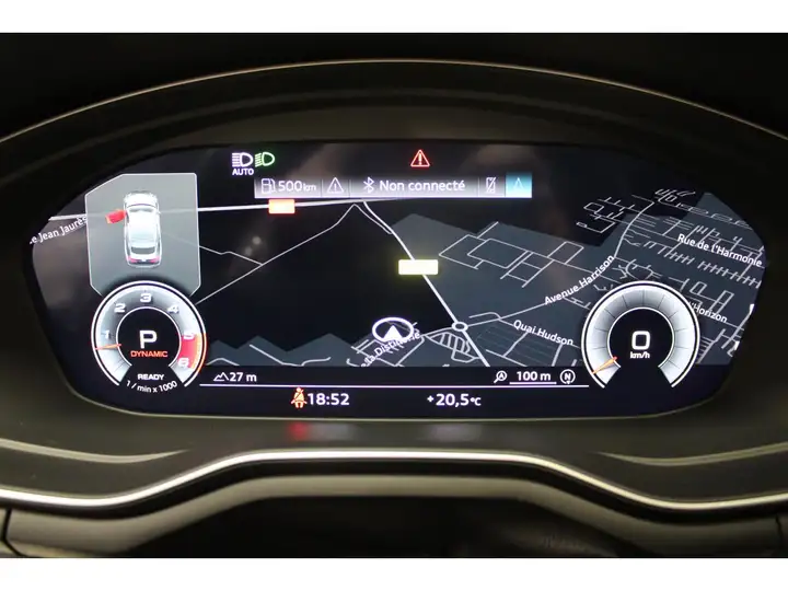 À l’intérieur, l’Audi A5 se distingue par un habitacle haut de gamme, avec des matériaux de qualité, un cockpit numérique moderne et des technologies de pointe, telles que le système MMI Touch Response, la navigation avancée et les aides à la conduite.