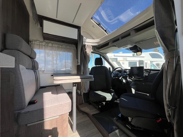 Le salon du TESSORO T 440 UP constitue un espace central dédié à la détente et aux échanges. Les assises confortables permettent de se détendre après une journée de route. De plus, la table centrale peut être utilisée pour les repas, les loisirs ou le travail. Grâce aux sièges avant pivotants, l’espace devient modulable et s’adapte aux besoins des occupants. Par ailleurs, les grandes ouvertures vitrées laissent entrer une lumière naturelle abondante. Ainsi, le salon offre une atmosphère chaleureuse et conviviale, idéale pour partager des moments agréables.