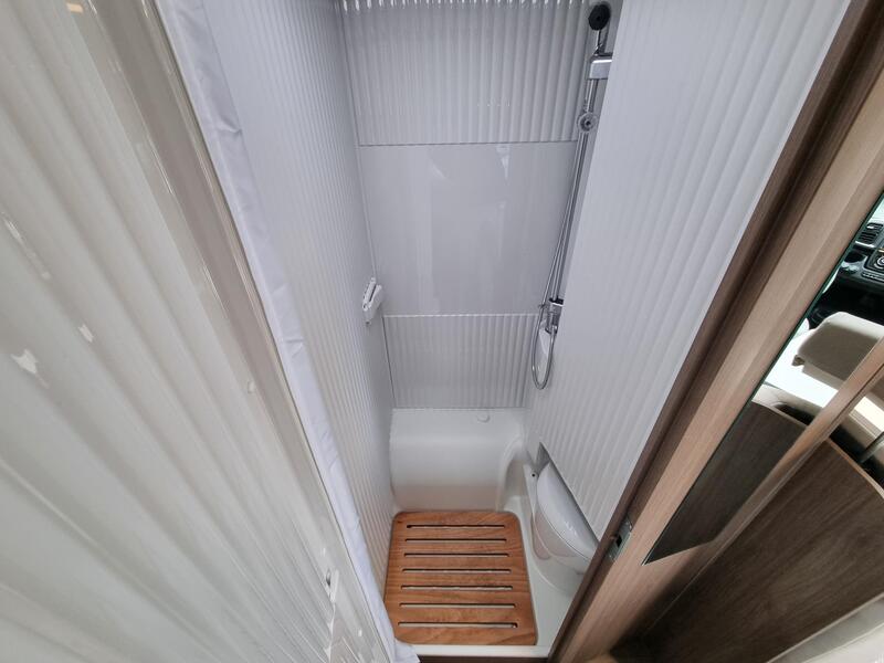 Caillebotis de douche + Panneau solaire 100 W + Pack multimédia avec caméra de recul : 2775 €