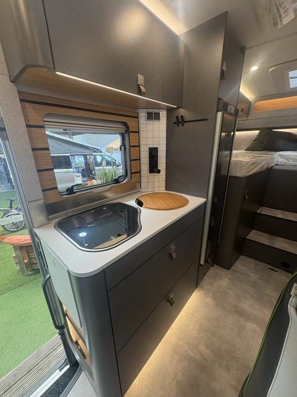 Dans la continuité du salon, la cuisine du ML-T 570 CrossOver a été conçue pour offrir efficacité et praticité. Malgré des dimensions maîtrisées, elle propose un équipement complet répondant aux besoins du quotidien. Le plan de travail, bien agencé, facilite la préparation des repas. Les rangements intégrés permettent de stocker vaisselle et provisions de manière organisée. De plus, les appareils ont été choisis pour leur fiabilité et leur faible consommation. Ainsi, l’autonomie est préservée lors des séjours prolongés. Grâce à un éclairage bien positionné, la cuisine reste agréable à utiliser, quelles que soient les conditions extérieures.