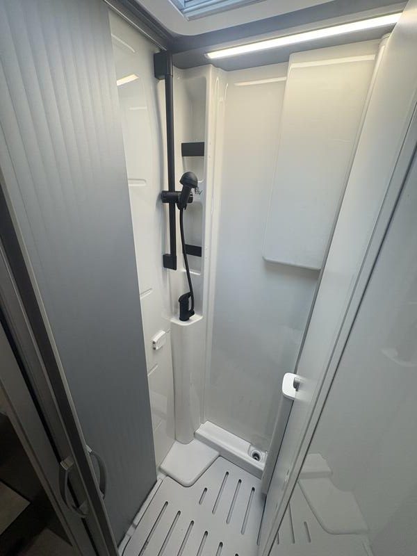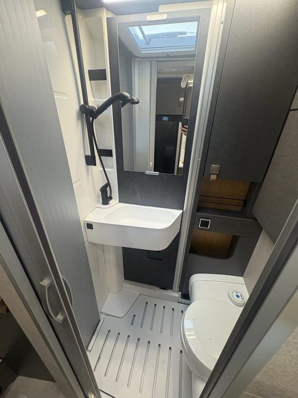 La salle d’eau du HYMER ML-T 570 CrossOver privilégie la fonctionnalité sans négliger le confort. Chaque élément y trouve sa place de manière logique. La douche, bien dimensionnée, permet une utilisation quotidienne confortable. Les matériaux résistants à l’humidité ont été privilégiés afin d’assurer une durabilité optimale. Par ailleurs, les rangements intégrés facilitent l’organisation des affaires de toilette. Une ventilation efficace contribue à maintenir un environnement sain. Ainsi, la salle d’eau répond parfaitement aux exigences de voyageurs actifs, soucieux de leur confort après des journées riches en activités.