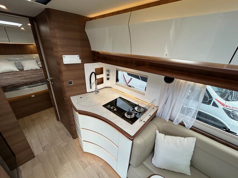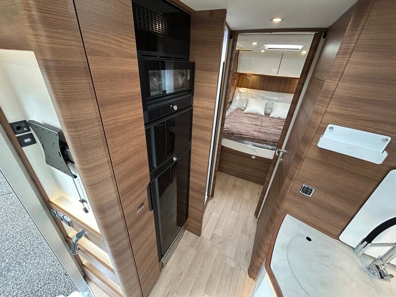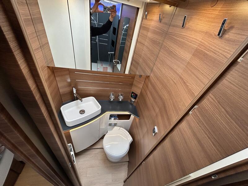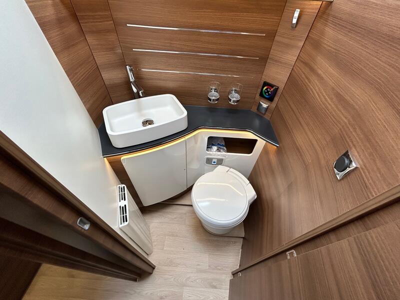 La cuisine du RAPIDO i 196 M combine ergonomie, compacité et efficacité. Le plan de travail spacieux permet de préparer les repas facilement. Les rangements intégrés assurent un accès rapide aux ustensiles et aux provisions. Les équipements, tels que le réfrigérateur performant, les plaques de cuisson et le four, ont été sélectionnés pour leur fiabilité et leur consommation maîtrisée. L’éclairage bien pensé améliore la visibilité et le confort lors de la préparation des repas. Ainsi, la cuisine reste pratique et fonctionnelle, même lors de séjours prolongés, garantissant une autonomie complète pour les repas à bord.