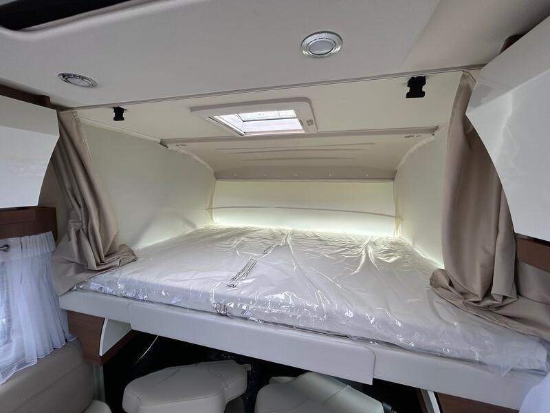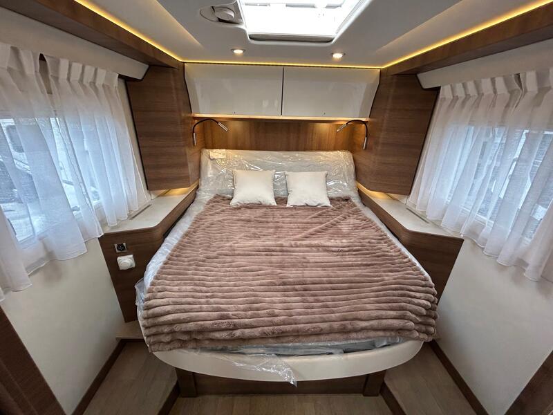 L’espace nuit du RAPIDO i 196 M a été conçu pour offrir un sommeil réparateur et un confort optimal. Le lit principal est doté d’un matelas ergonomique assurant un soutien adapté. Les dimensions généreuses permettent à deux personnes de bénéficier d’un espace confortable. L’isolation thermique et acoustique a été renforcée pour limiter les nuisances extérieures. Des rangements pratiques sont placés autour du lit, permettant un accès facile aux effets personnels. Grâce à un éclairage modulable, l’ambiance nocturne est douce et apaisante, favorisant un repos complet après chaque journée de voyage.