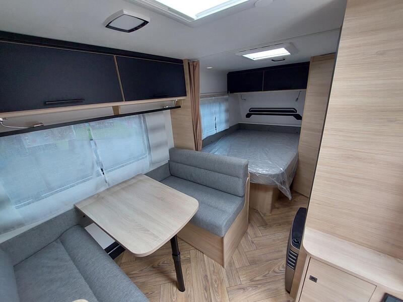 Le salon de la CARAVELAIR 410 SPORT LINE constitue le cœur de la vie à bord. Les assises confortables accueillent plusieurs personnes et permettent de se détendre après une journée de voyage. La table centrale, extensible et fonctionnelle, peut servir pour les repas, le travail ou les loisirs. Les sièges se convertissent facilement en espace de couchage supplémentaire, offrant une grande flexibilité. Les baies vitrées panoramiques apportent lumière et vue sur l’extérieur, rendant l’espace agréable en toutes saisons. Par conséquent, le salon devient un lieu de vie modulable, accueillant et convivial.