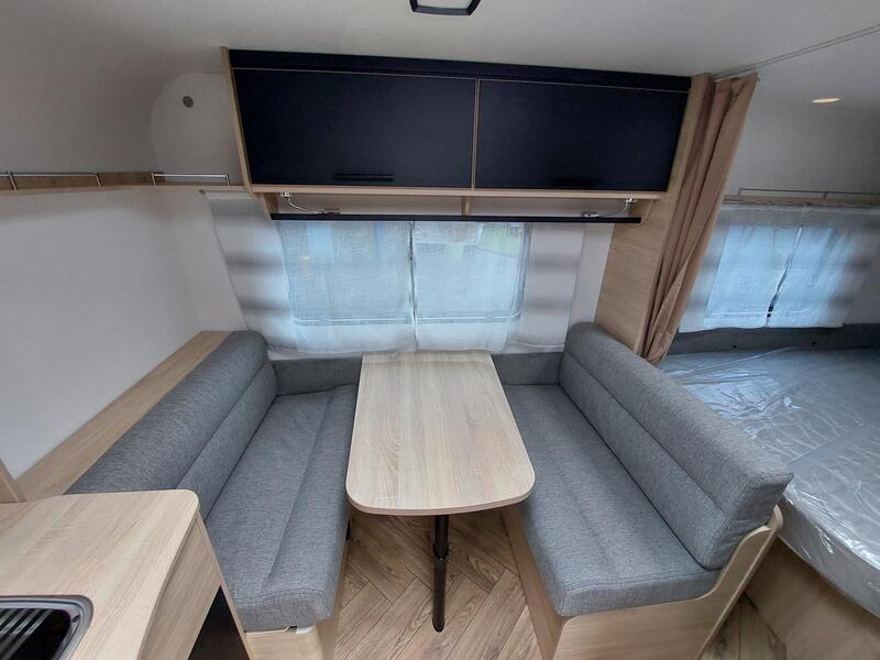 L’accès à la CARAVELAIR 410 SPORT LINE a été conçu pour être pratique et sécurisé. La porte principale, isolante et robuste, protège efficacement contre les variations de température et les intrusions. Le marchepied intégré facilite l’entrée, même pour les enfants et les personnes âgées. Dès que l’on entre, l’agencement intérieur révèle un espace harmonieux et ergonomique. Les matériaux utilisés sont résistants et faciles à entretenir, contribuant à la longévité de la caravane. De plus, des rangements pratiques sont placés à proximité pour un accès rapide aux affaires quotidiennes, rendant l’usage quotidien simple et agréable.