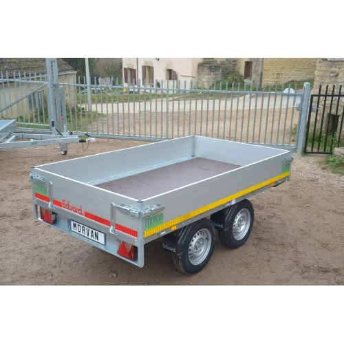 La remorque Eduard Plateau 251 x 145 ridelles de 30 cm PTAC 750 kg convient aux usages polyvalents.