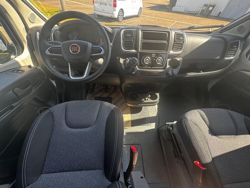 Le fourgon repose sur un porteur Fiat Ducato, moteur 2,2 L de 140 ch. Cette motorisation offre puissance et fiabilité pour tous les types de trajets, que ce soit sur autoroute ou sur routes secondaires. La conduite se révèle stable et agréable, même avec une charge complète.