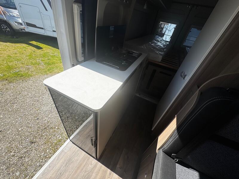 Malgré son gabarit compact, le CARADO CV 640 PRO intègre une salle d’eau complète. Équipée d’un lavabo, de toilettes à cassette et de rangements, elle permet une utilisation pratique et agréable au quotidien. Les surfaces faciles à nettoyer et les spots LED encastrés assurent un espace lumineux et fonctionnel.