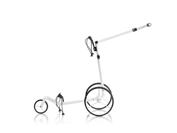Conçu dans un design blanc mat, ce nouveau chariot en fibre de carbone high-tech vous séduira par sa légèreté et sa résistance à la traction. Le chariot est équipé du pack-technique « 2.0 », incluant une technicité de moteur et de stationnement de dernière génération, un connecteur magnétique ainsi qu’un indicateur de niveau de charge, intégré au chariot.