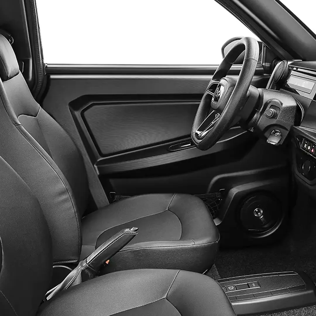 Malgré ses dimensions compactes (1500 mm de large, 2950 mm de long et 1530 mm de haut), la Ligier Myli offre un habitacle accueillant pour deux personnes. Son poids léger de 371 kg lui confère une agilité remarquable en ville. Le coffre, d’un volume généreux de 459 litres, offre un espace de rangement appréciable pour les courses ou les petits bagages. Les freins à disques avant et arrière assurent un freinage efficace et sécurisant. De plus, cette version de la MyLi est équipée de la direction assistée.