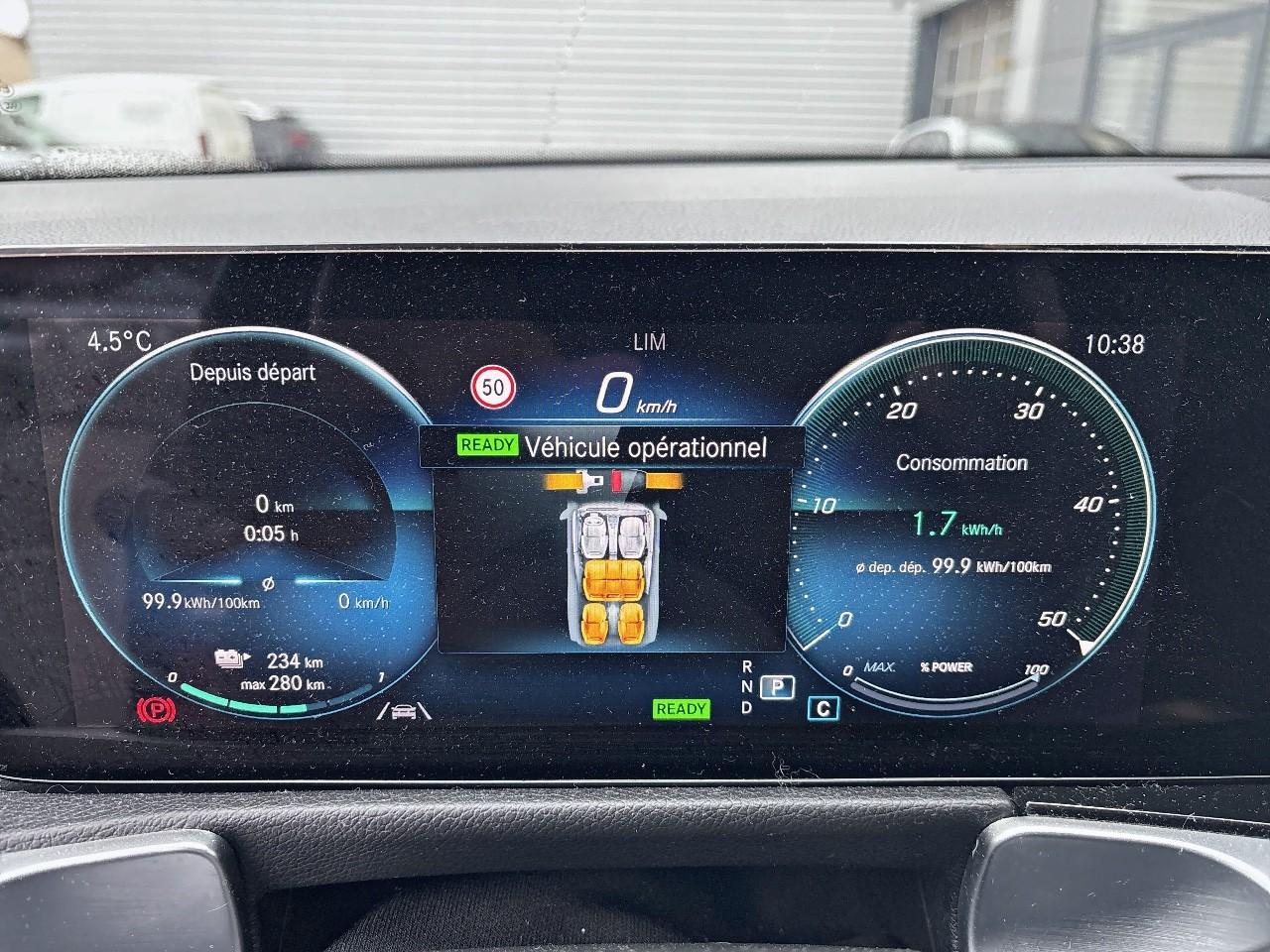 À bord, le Mercedes EQB offre un habitacle spacieux et raffiné, conçu pour le confort des passagers. La planche de bord intègre un grand écran central tactile et un combiné numérique, créant une ambiance moderne et immersive. Les matériaux de qualité et les finitions soignées soulignent le positionnement premium du véhicule. Grâce à une modularité intelligente, l’EQB peut accueillir jusqu’à sept passagers selon les configurations, tout en conservant un espace de chargement flexible. Une fois installée, intéressés-nous aux technologies embarquées.