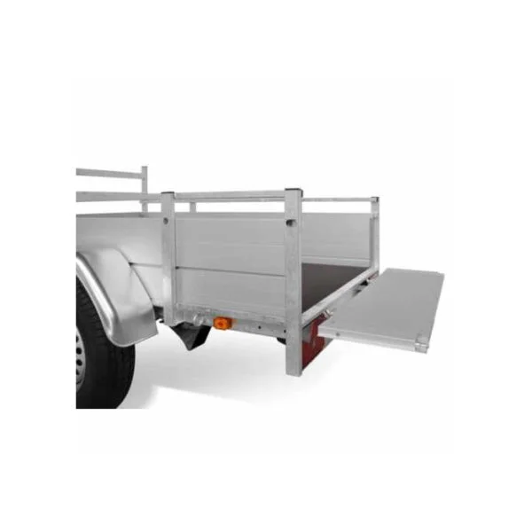 La plateforme de la remorque est conçue pour accueillir des charges volumineuses. Grâce à ses dimensions généreuses, vous pouvez charger facilement tout type d’objet. De plus, la remorque est équipée de ridelles démontables, vous permettant de charger et décharger vos affaires en toute simplicité.